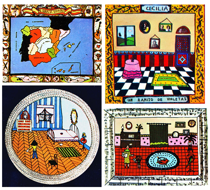 Pinturas de Cecilia para su álbum Un ramito de violetas, que intentó vender en el Rastro. (Fotos: cecilia.net)